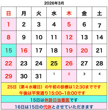 風邪のような症状(発熱、咳、喉の痛み、鼻水など)のある方は必ず受診の前に電話でご相談ください。